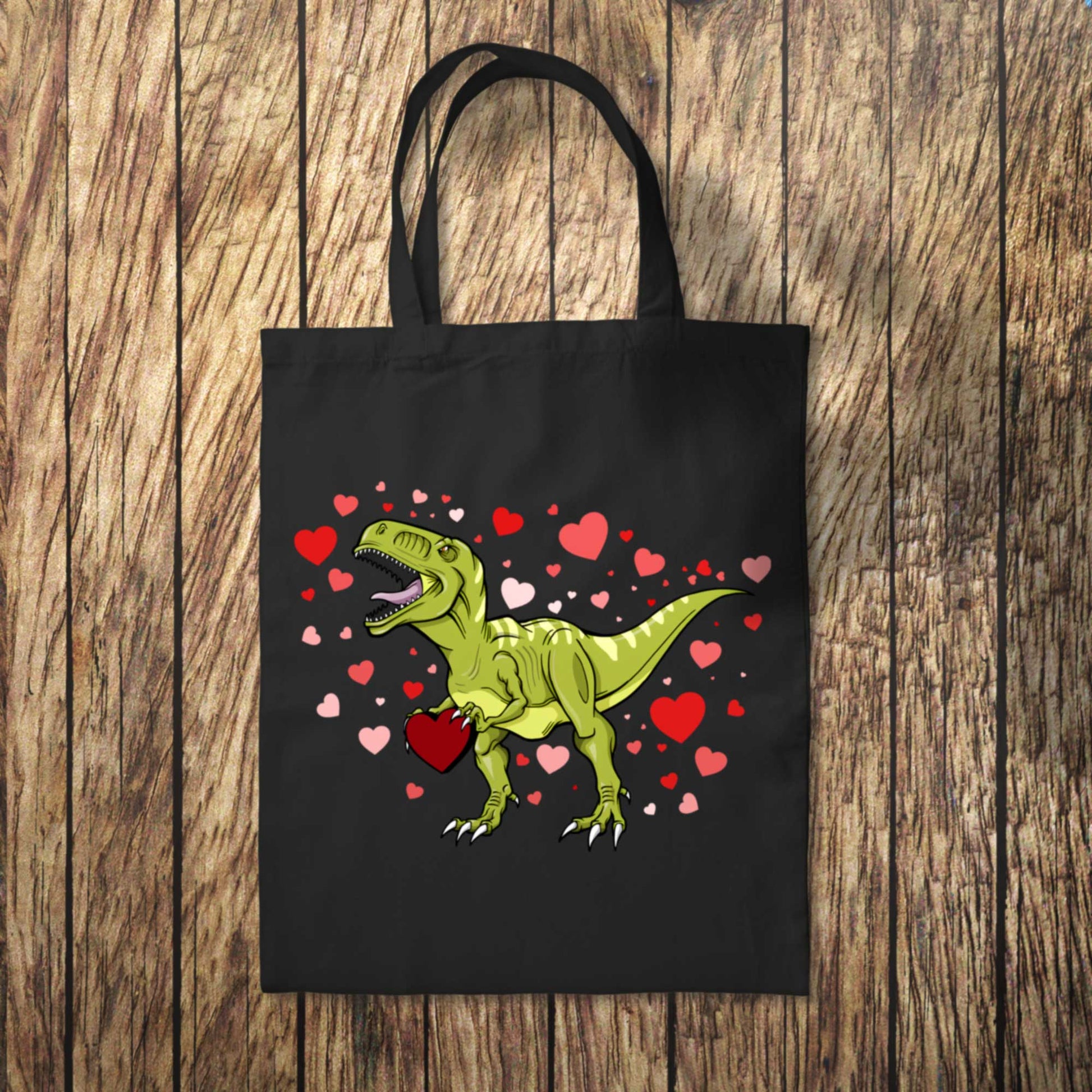 - Enjoy Valentines day the dinosaur way with this heart filled Tote Bag.