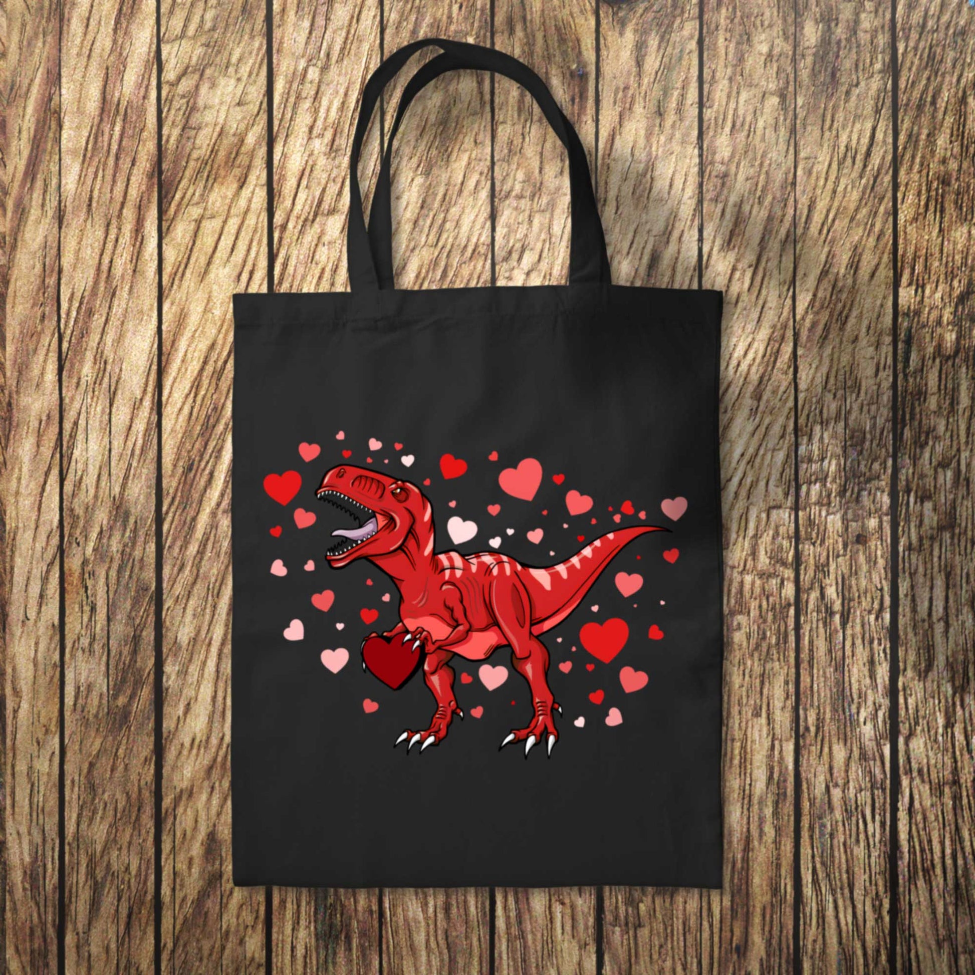 - Enjoy Valentines day the dinosaur way with this heart filled Tote Bag.